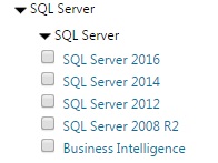 3) After selecting the appropriate technology, select the version and you will get options on the right hand side with the feature names. E.g. After selecting SQL Server –> Select SQL Server 2014